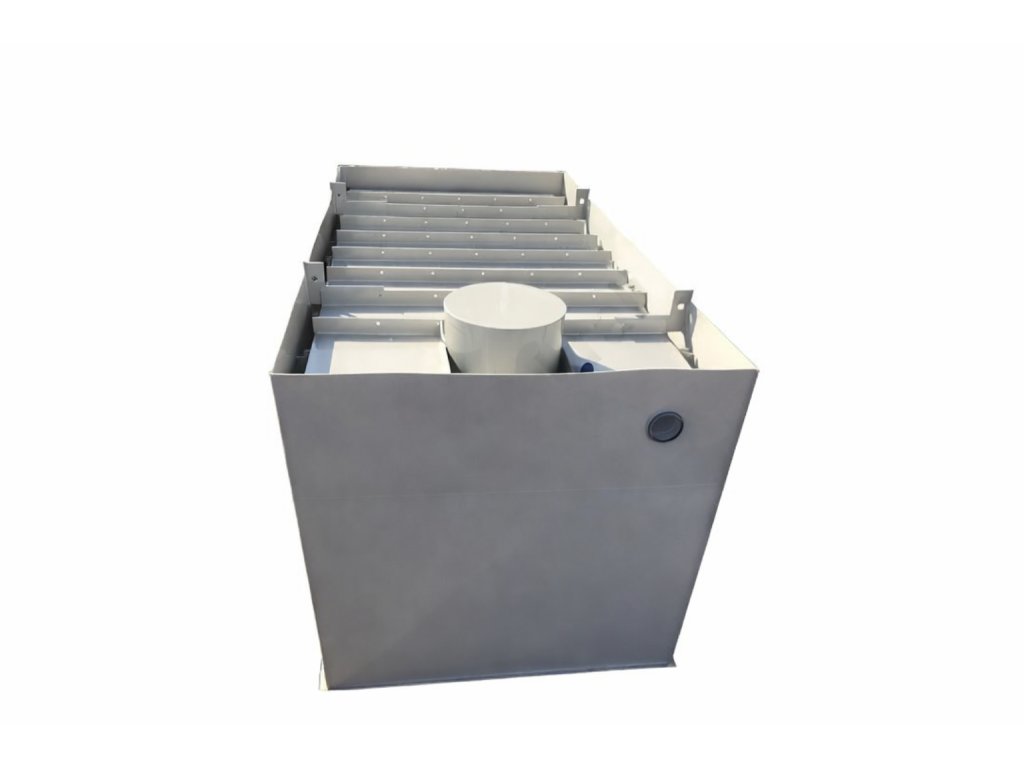 Dvouplášťová hranatá jímka určená k jímání odpadních vod nebo dešťových vod.