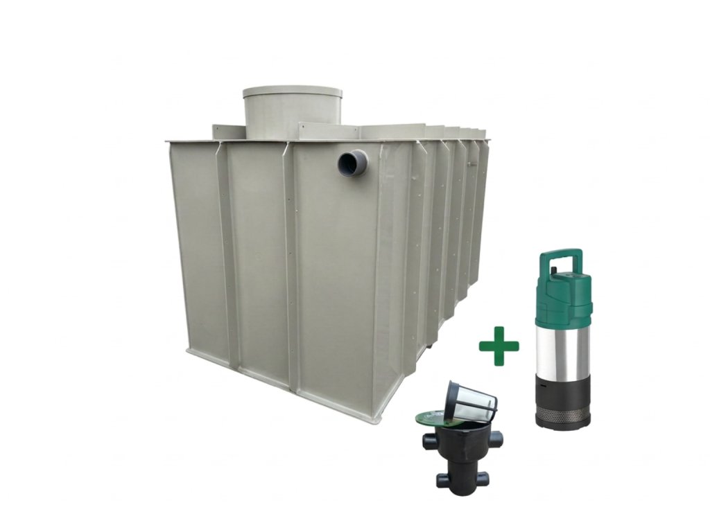 Nádrž je vybavená vnitřními stupadly, čerpadlem s automatickým provozem - parametry v přiloženém dokumentu (spíná u 2,5baru), filtrací v samostatné šachtě a kompletními vnitřními rozvody dn 32 (1" coul) a tichým nátokem.